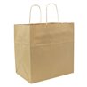 Muy utilizada en catering, pastelería y transporte de bandejas, esta bolsa de papel kraft ofrece una muy buena experiencia de uso gracias a sus asas planas.