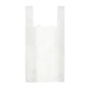 Bolsa de plástico camiseta 25x30 cm, color blanco translúcido y con asas.