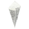 Cucurucho de papel antigrasa con un diseño Times que simula las hojas de un periódico. Descubre la forma más funcional, profesional y ecológica de servir tus fritos.