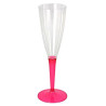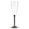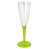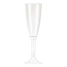 Copa transparente fabricada en PS, ideal para servir y consumir champán en cualquier evento. Cuenta con 100 ml de capacidad y un pie turquesa.