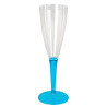 Descripción: Copa para cava de Plástico fabricada en poliestireno en Trasparente con el Pie de Color Turquesa de 100ml de capacidad.