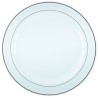 Descripción: Plato Redondo Blanco con Ribete Plateado fabricado en Plástico Rígido (PS).