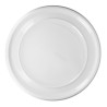 Plato reutilizable de 32cm de diámetro fabricado en plástico PS de color blanco ideal para todo tipo de negocios de restauración así como para eventos y catering.