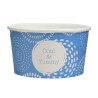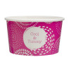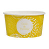 Tarrina de Cartón para Helados de 5Oz/140ml con impresión "Cool and Yummy" en amarillo y blanco.